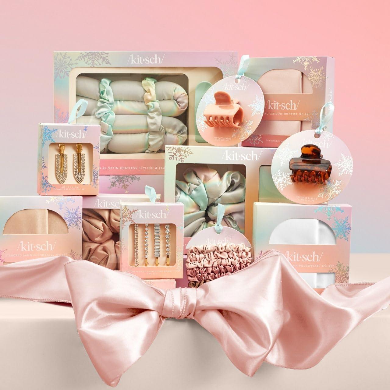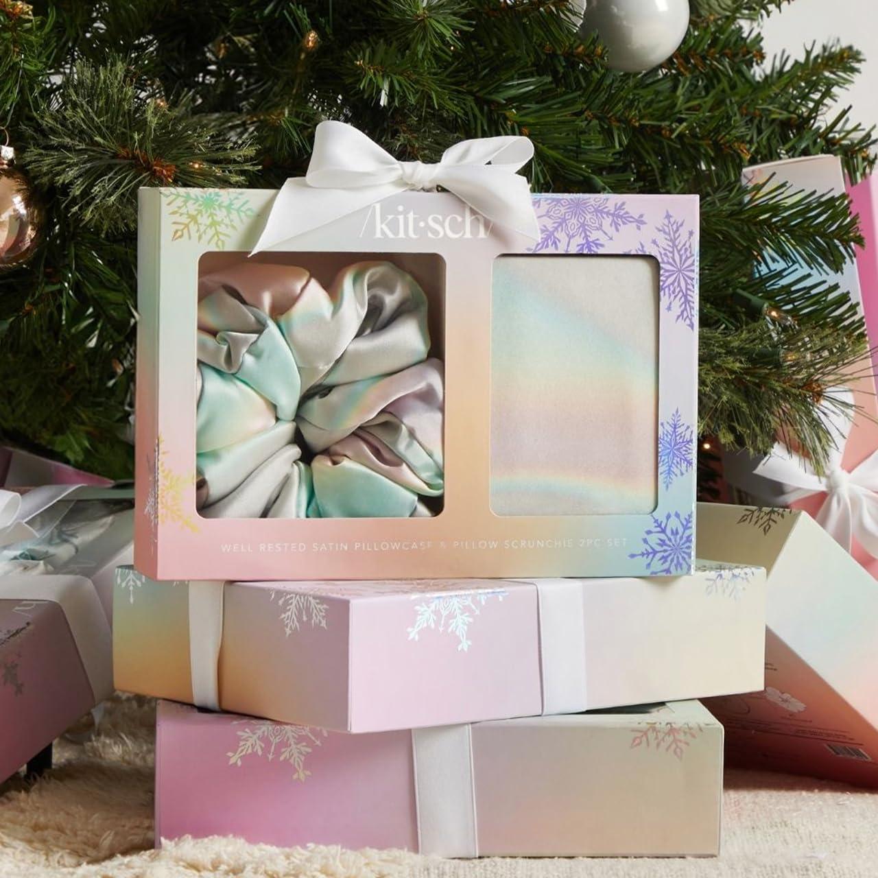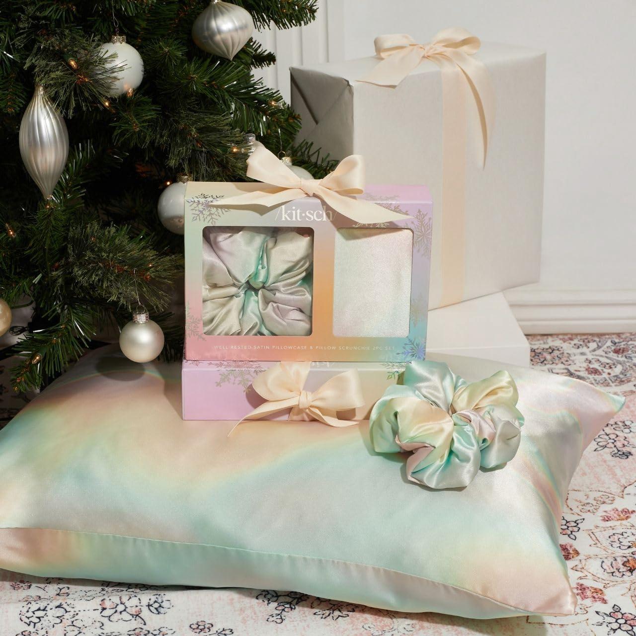 Kitsch Satin Pillowcase with Zipper for Hair & Skin – Softer Than Silk, Machine Washable, Wrinkle-Free – Queen/Standard (19×26) with Satin Scrunchie No-Damage Silk Hair Tie – Aura(Holiday Aura)
