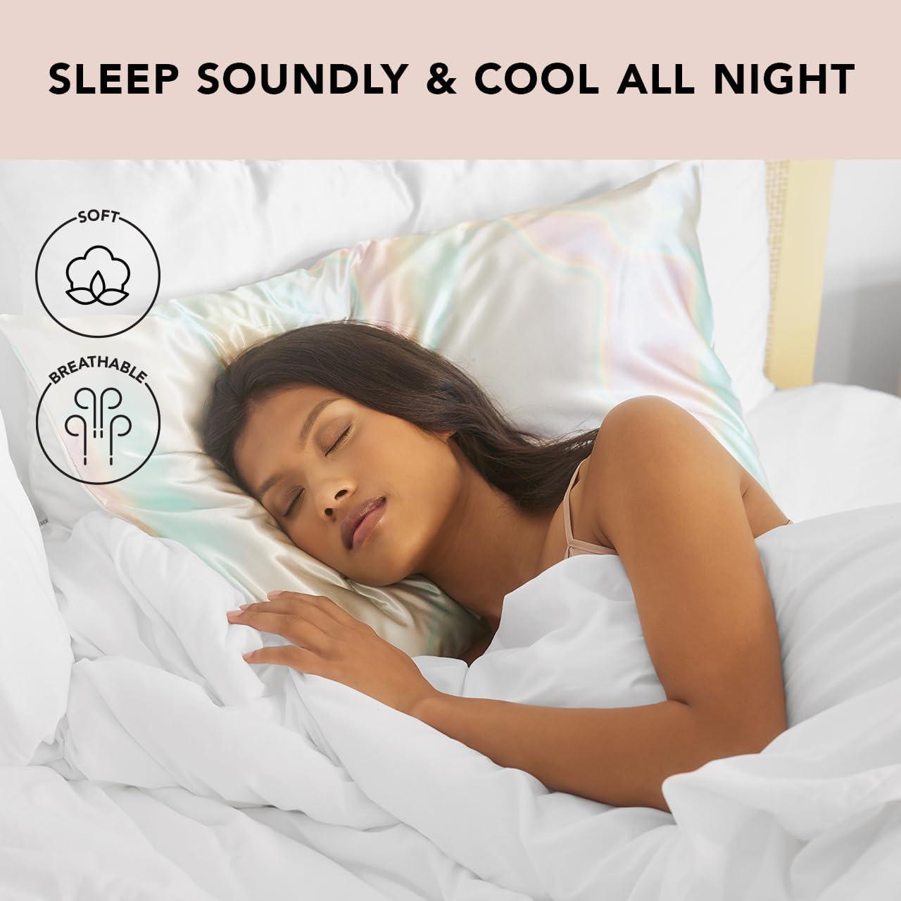 STAYS COOL & BREATHABLE ALL NIGHT – Our satin fabric regulates temperature to keep you cool and comfortable while you sleep. The silky-soft pillow case is gentle on skin, hair, eyelashes, and eyebrows—perfect for year-round comfort.