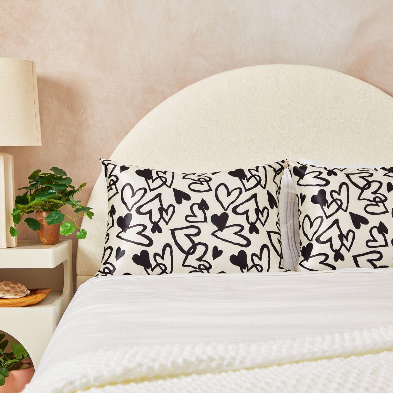 Kitsch Satin Pillowcase with Zipper for Hair & Skin, Softer Than Silk Pillow Cases Queen, Wrinkle-Free, Smooth and Cooling Satin Pillow Covers, Standard Size 19″x26″ – Aura, 2pcs(Heart)