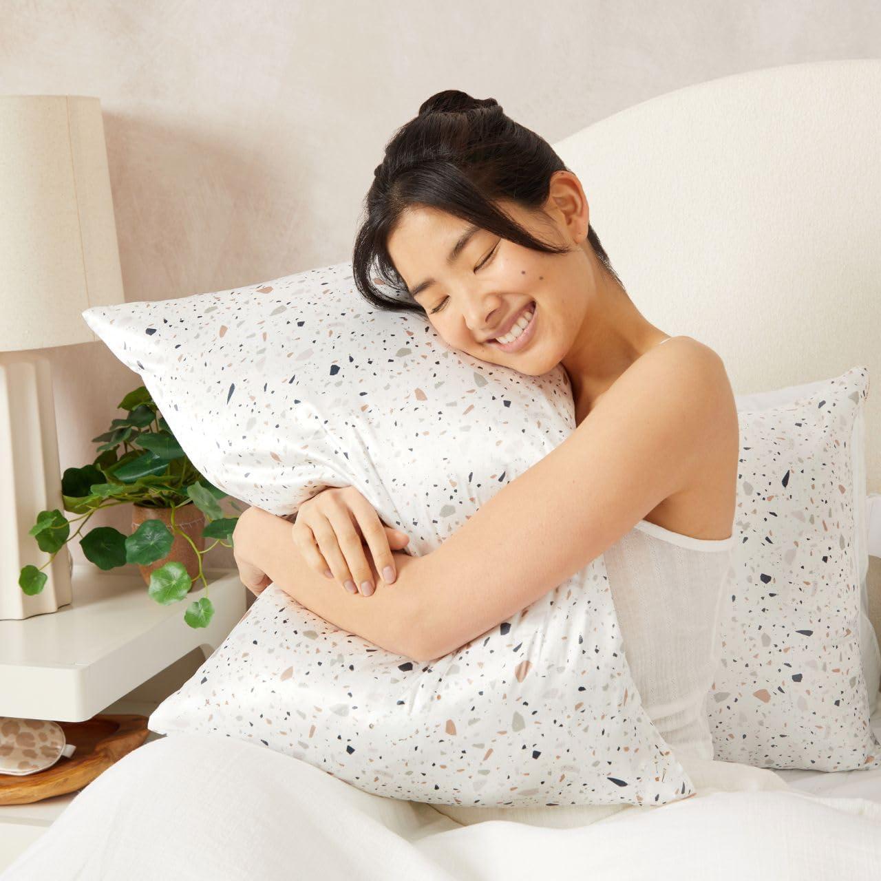 Kitsch Satin Pillowcase with Zipper for Hair & Skin, Softer Than Silk Pillow Cases Queen, Wrinkle-Free, Smooth and Cooling Satin Pillow Covers, Standard Size 19″x26″ – Aura, 2pcs(White Terrazzo)
